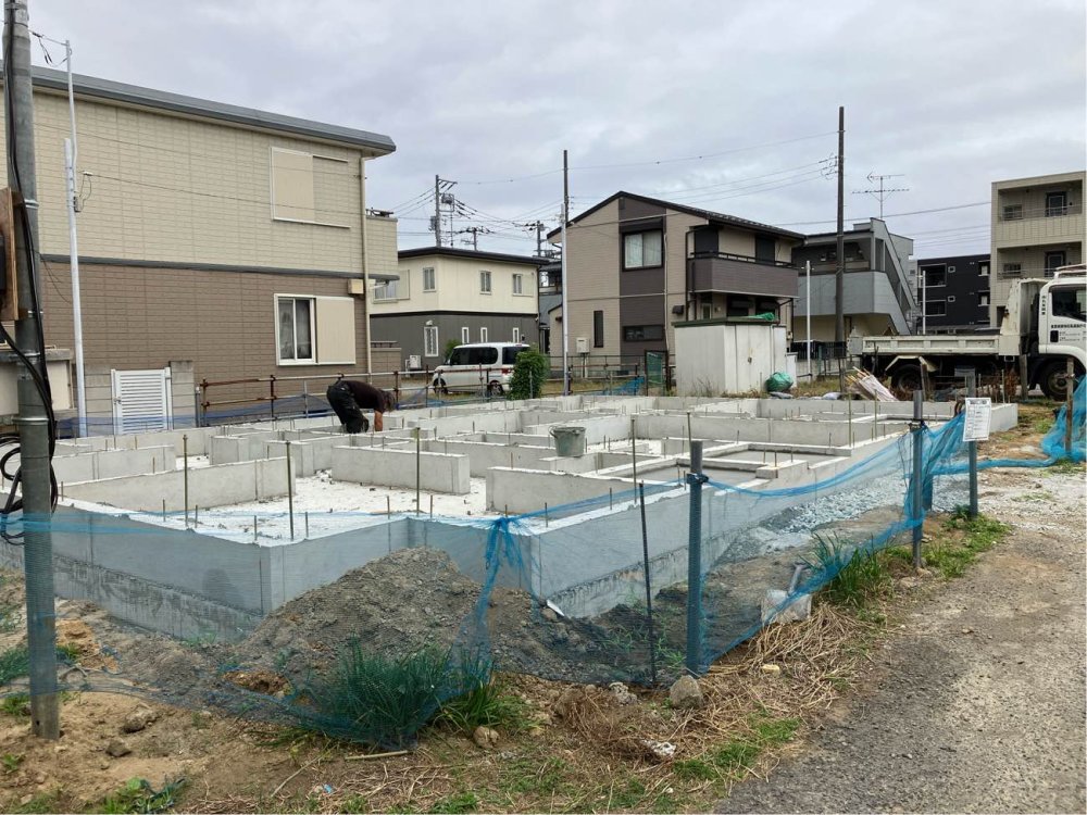 基礎工事がおおむね完了しまして、まもなく上棟の準備に入ります。