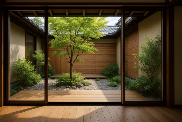 実際に、弊社でもこうした【パティオ】(中庭)を取り入れたお住いの実例はいくつかございますので、
