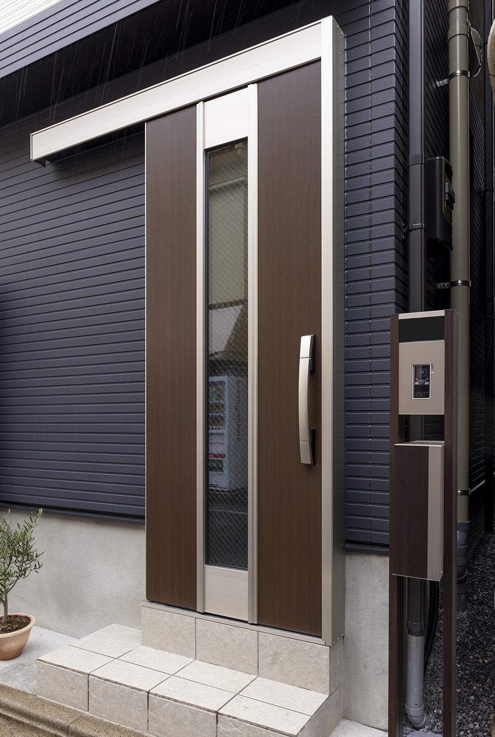 玄関を引き戸にすることで、敷地ギリギリまで建物を配置。